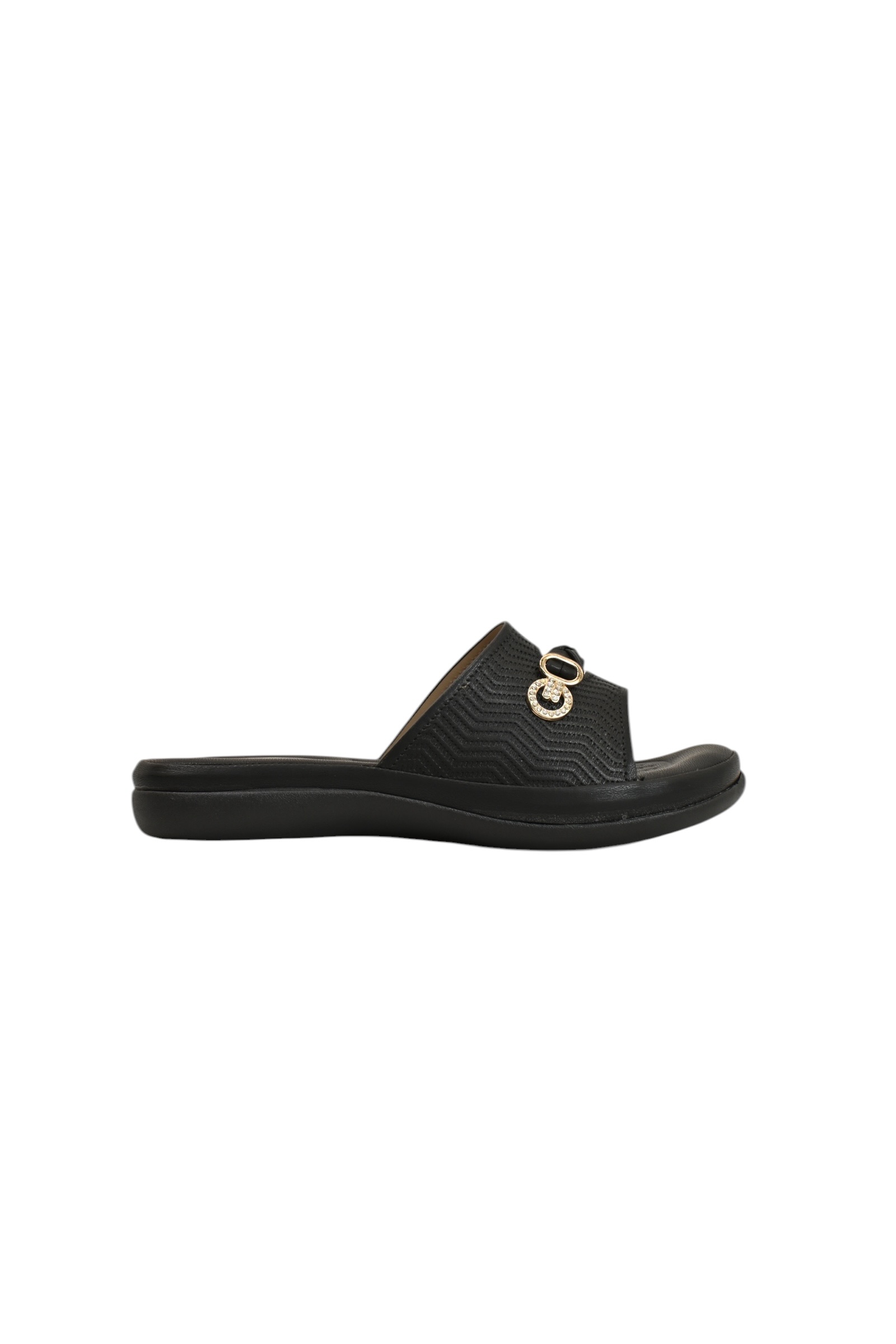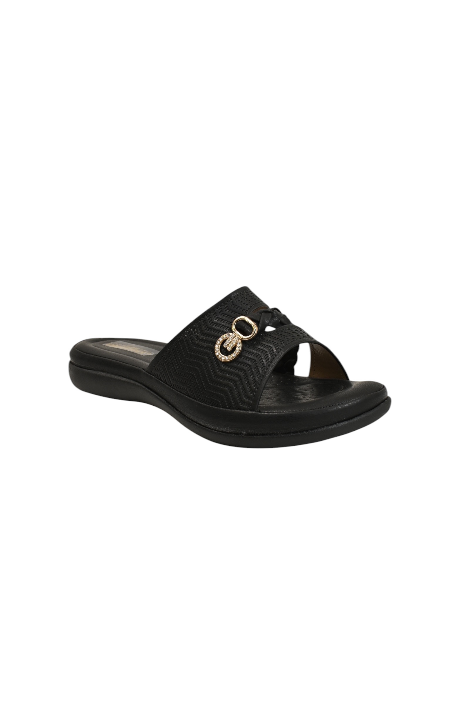 Experience all-day ease with these Black Comfort Flat Slide for Women by UrbanToes, designed for effortless daily wear and maximum comfort. Featuring a soft textured upper with a subtle metallic accent, these sandals offer a clean and minimal look perfect for everyday styling.