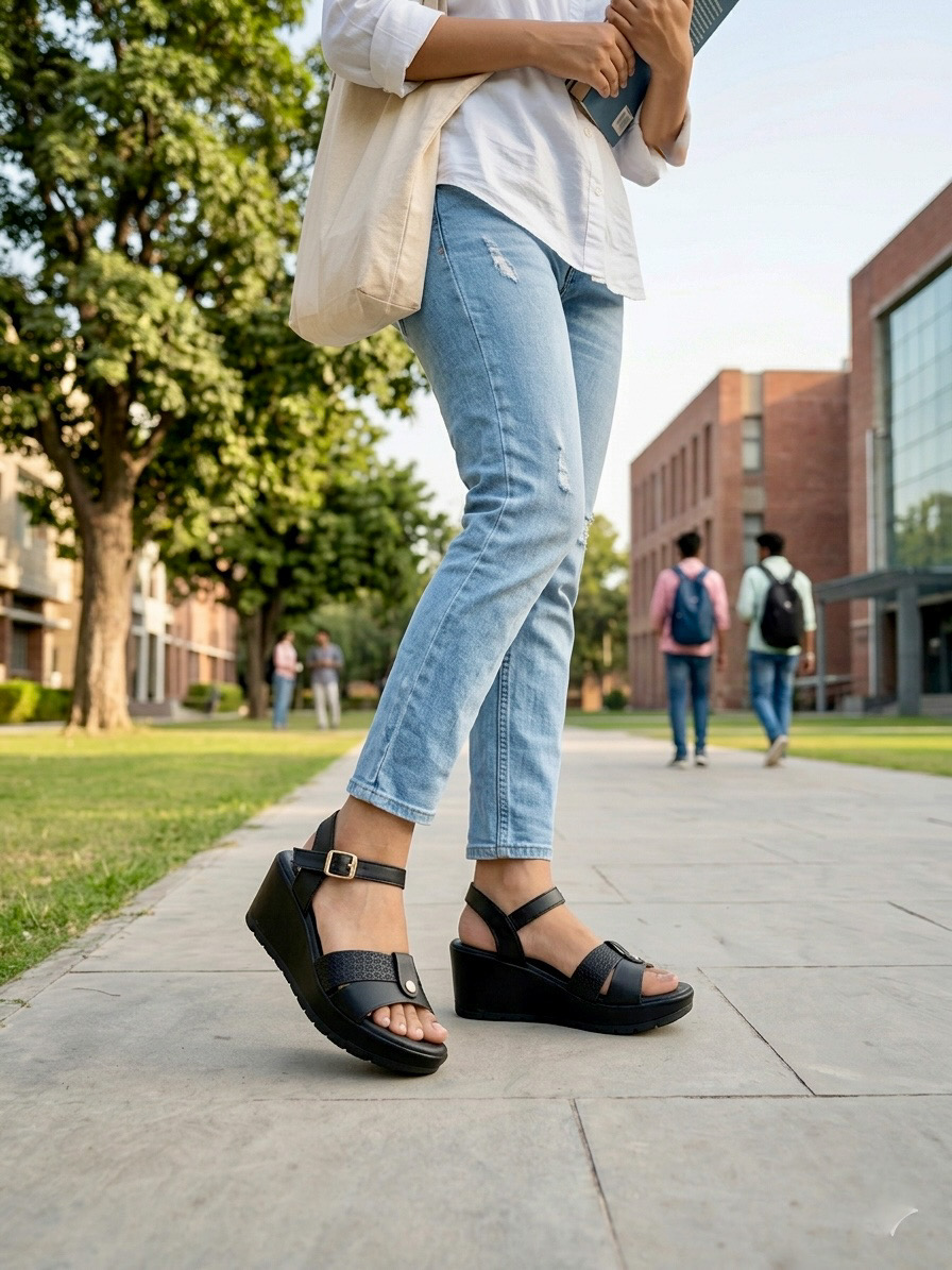 The cushioned footbed ensures lasting comfort, while the wedge heel sandals provides gentle height and better weight distribution for long hours of wear. The adjustable ankle strap offers a secure fit, making these sandals ideal for daily use, office wear, and casual outings.