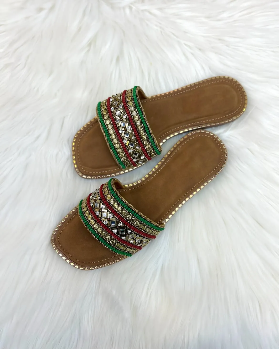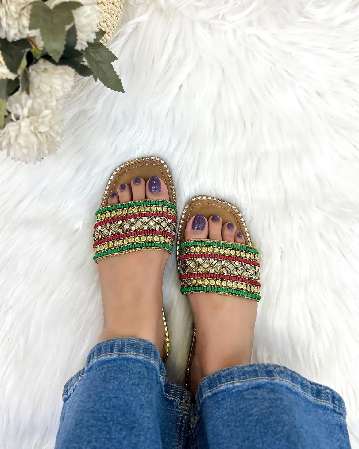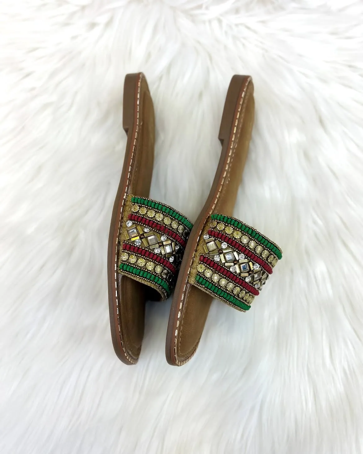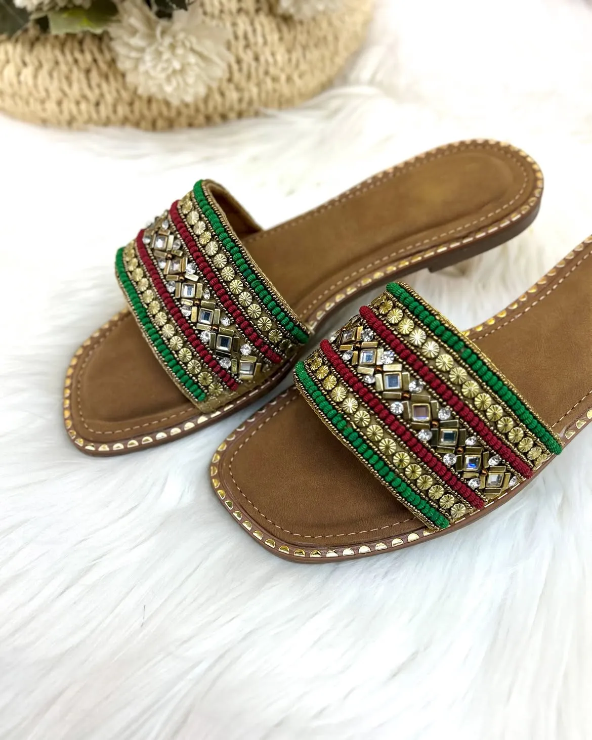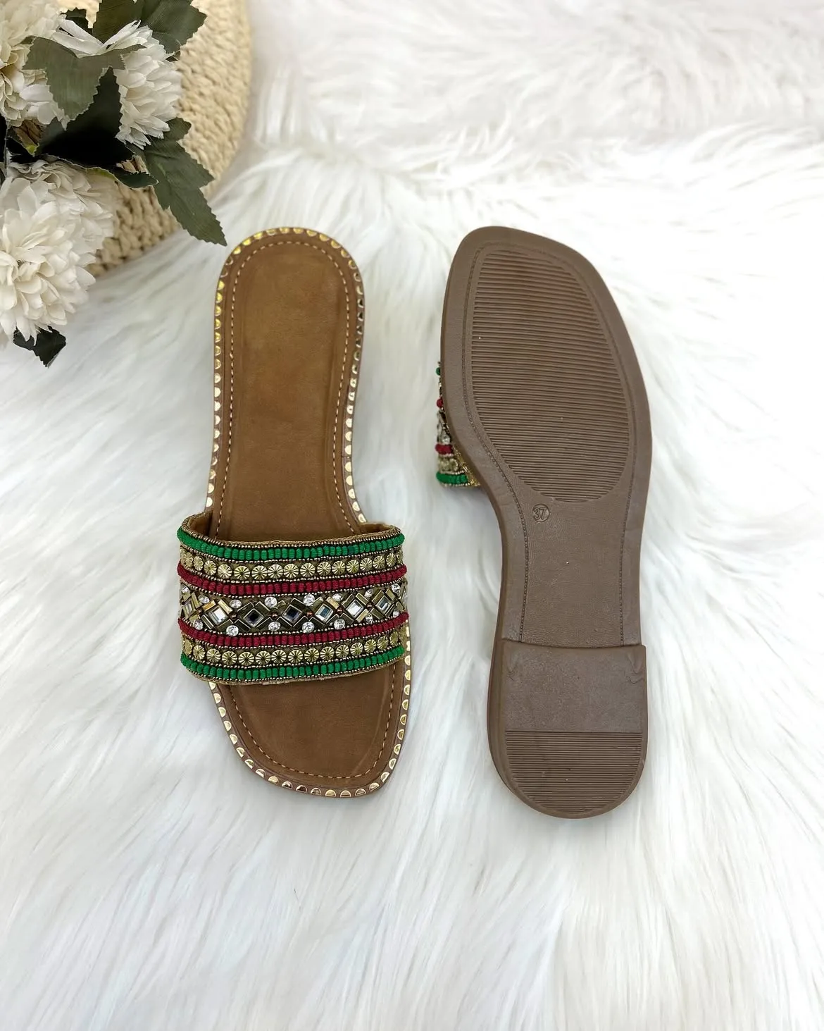 Lightweight yet stylish, these gold embroidered slippers add a touch of sophistication to ethnic and western outfits alike—making them a versatile must-have in your footwear collection.