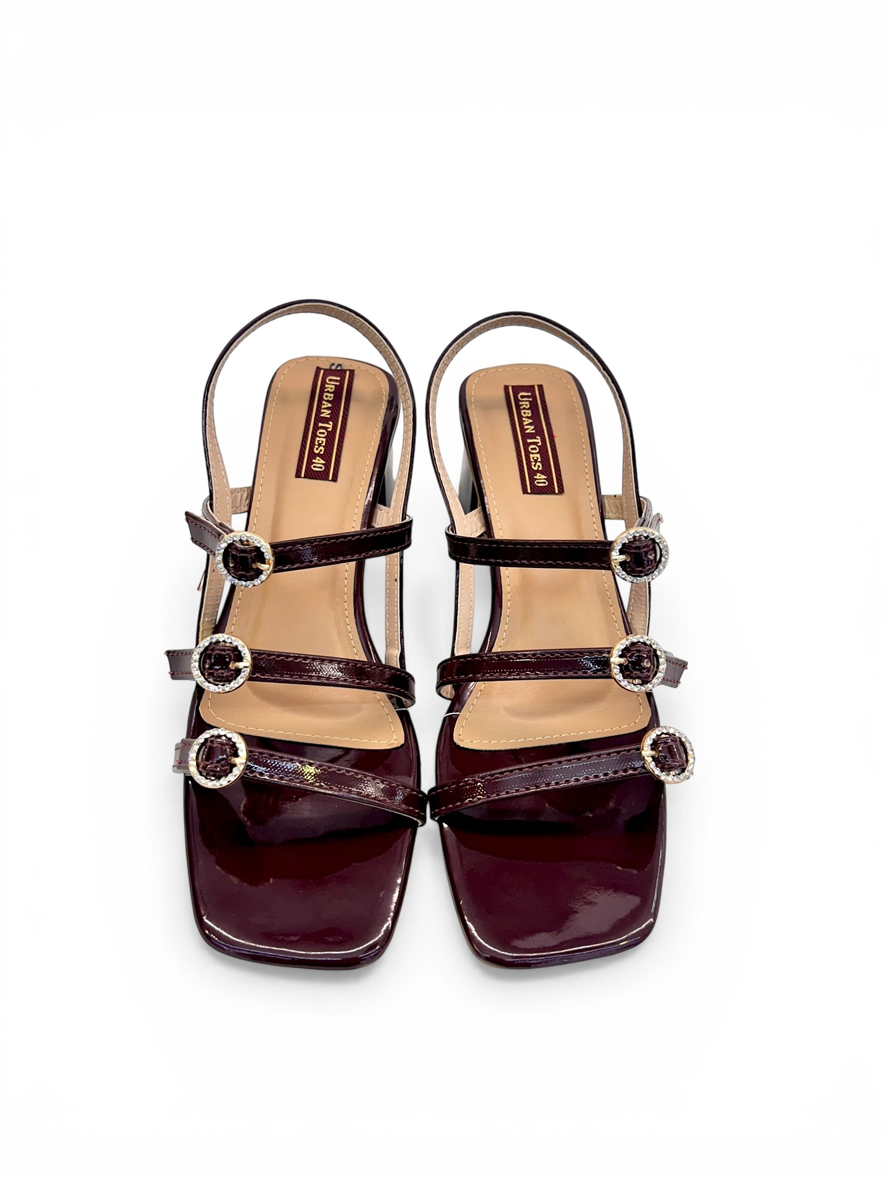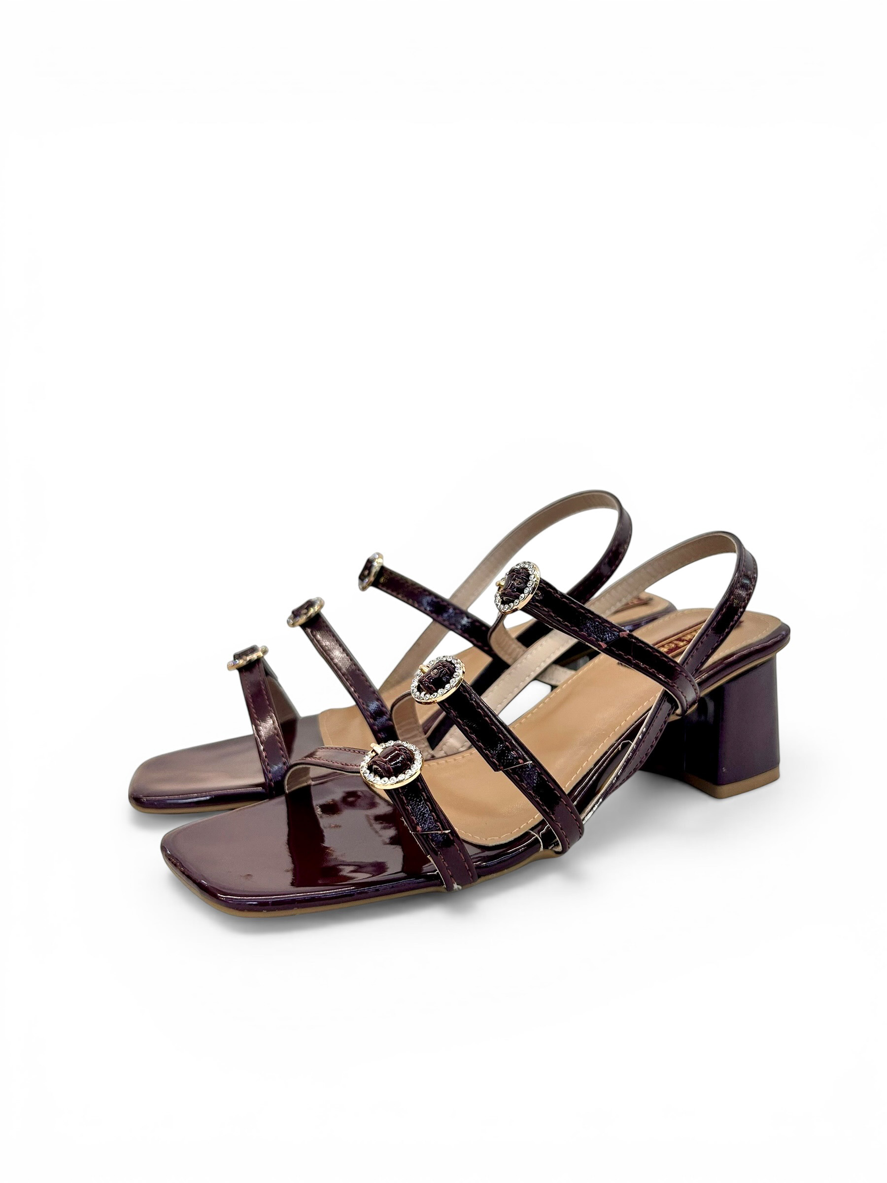 Cherry block heel sandals for women with elegant multi-strap design and comfortable mid heel. Perfect for office and festive occasions.