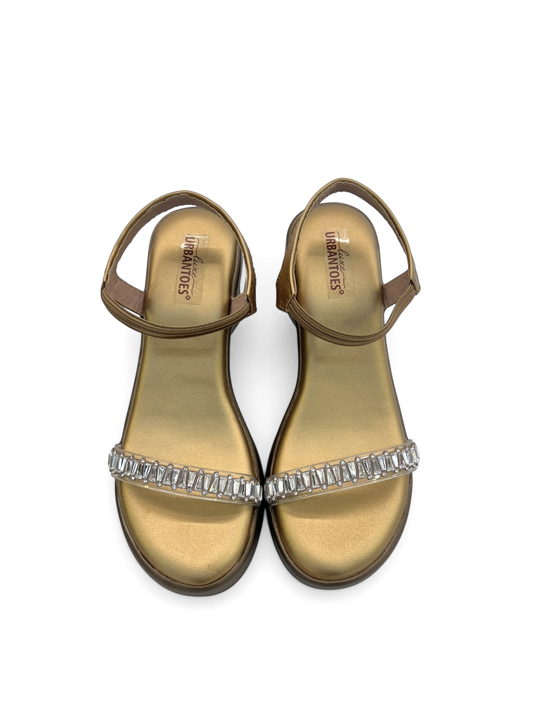 Add a touch of festive elegance with these Copper Embellished Wedge Sandals for Women by UrbanToes, designed to combine glamour with everyday comfort. Featuring a beautifully embellished front strap with stone detailing, these sandals bring a premium festive look perfect for Indian occasions.