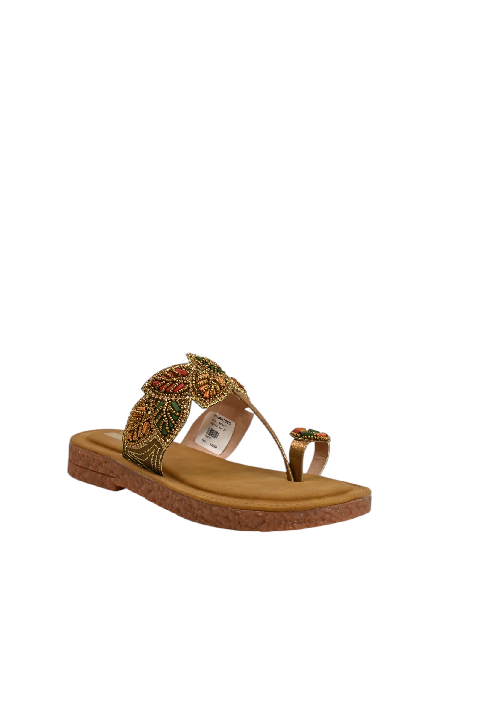Crafted with a durable vegan leather base, the sandals offer a soft feel and long-lasting comfort. The cushioned footbed ensures ease during extended wear, while the flat sole provides stability and flexibility for daily use. The toe ring structure offers a secure fit while enhancing the ethnic silhouette.
