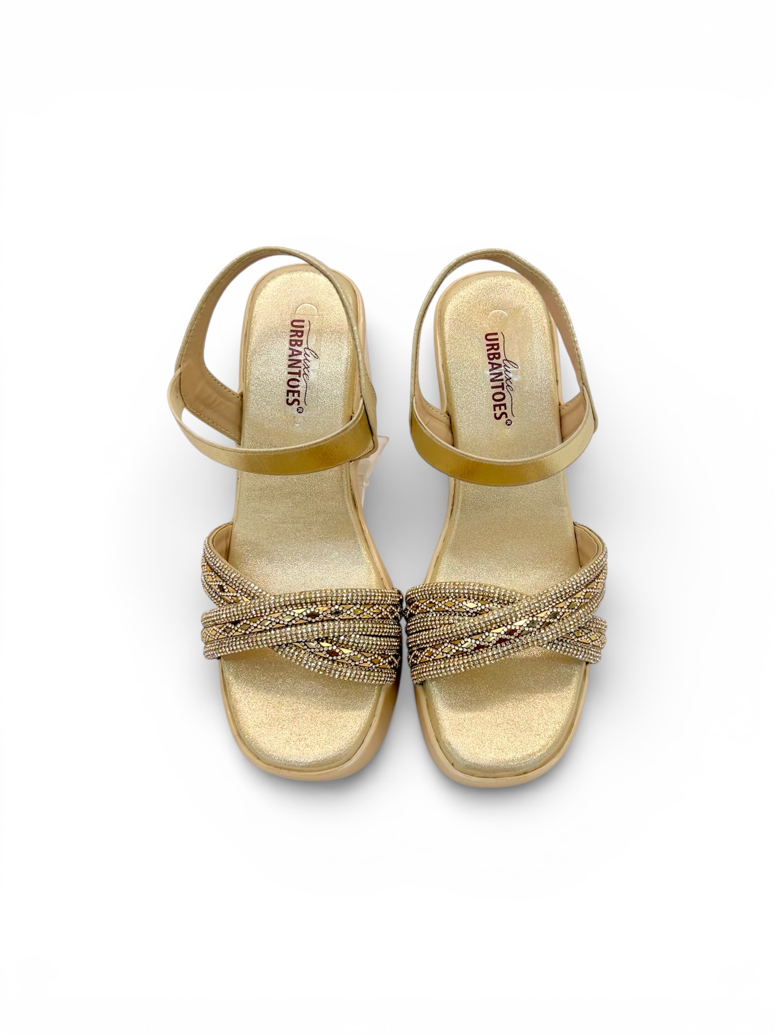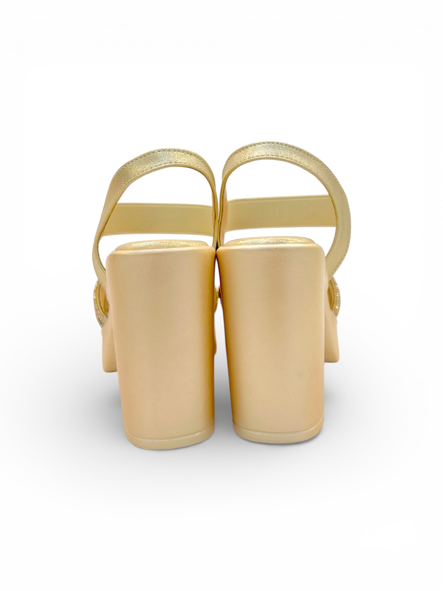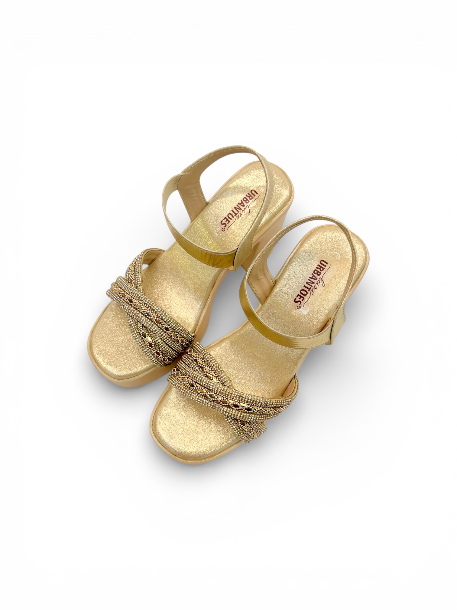 Step into glamour with these stunning Gold Platform Heels for Women, designed to add height, elegance, and festive sparkle to your look. Featuring a beautifully embellished front strap with intricate bead detailing, these heels are perfect for weddings and celebration nights.