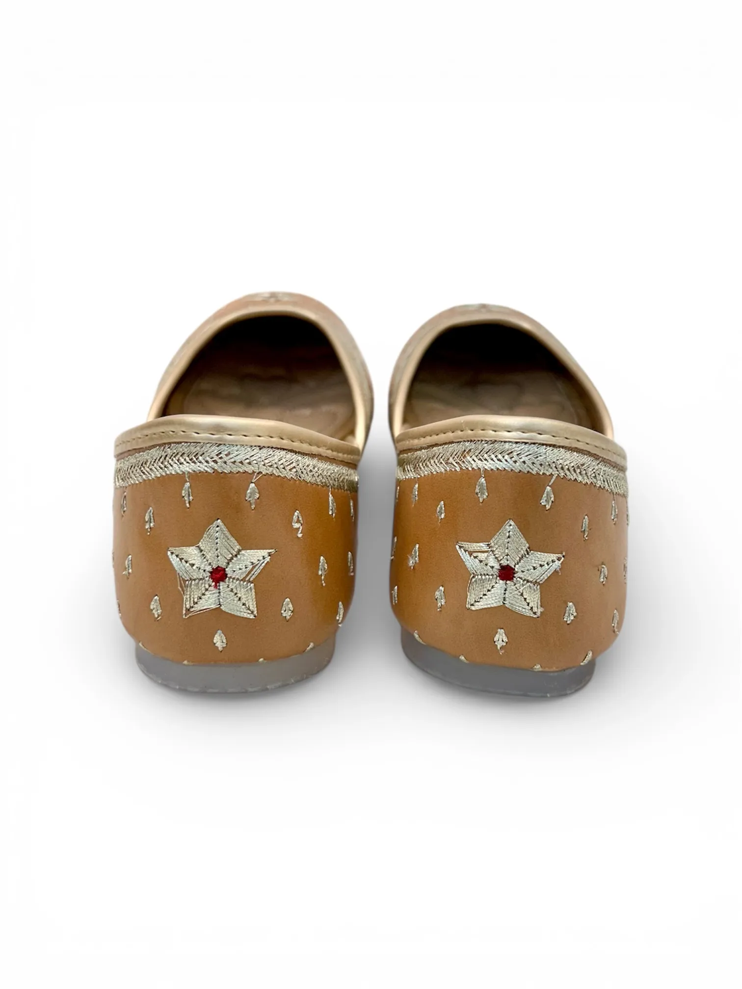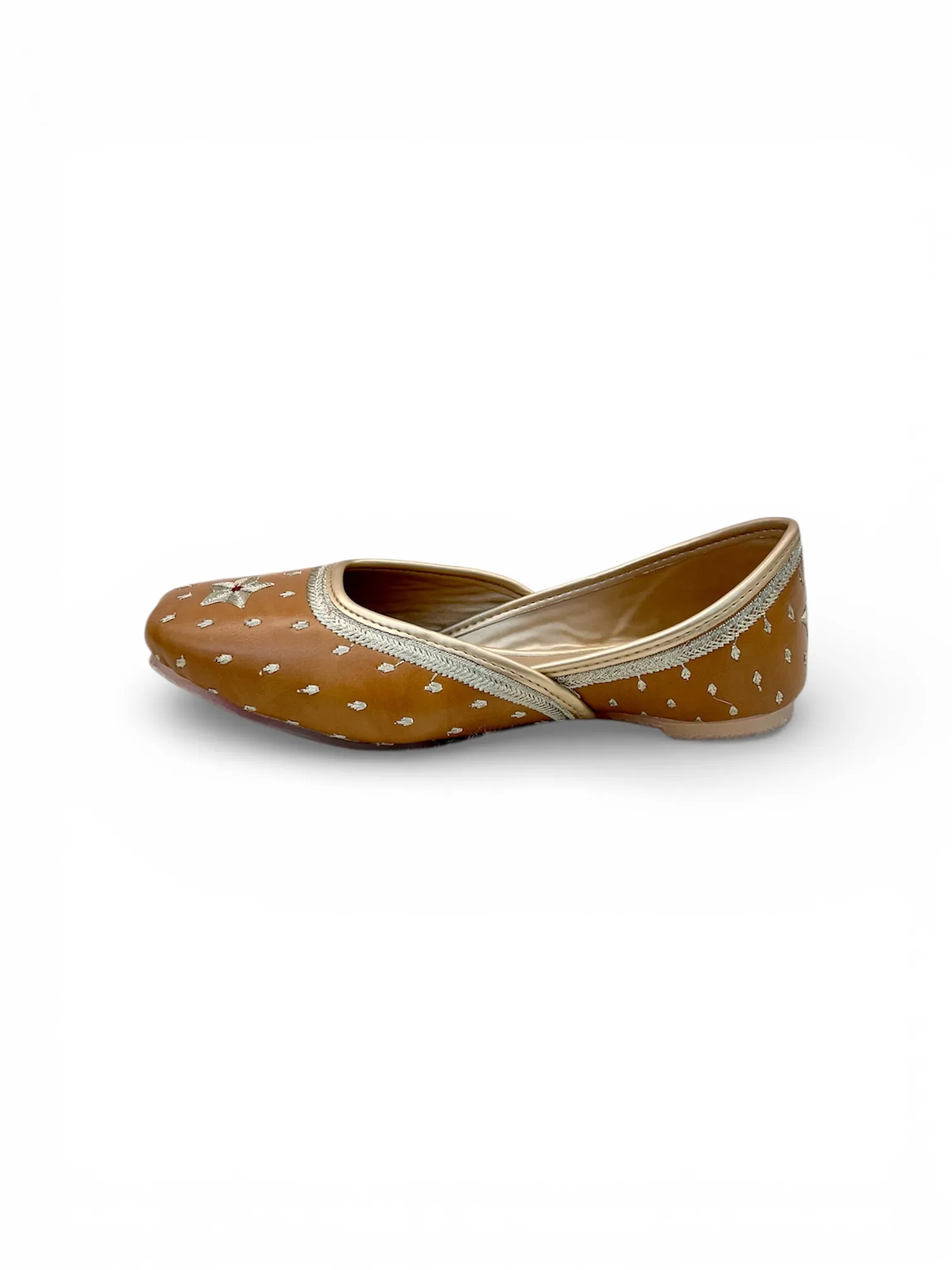 Add timeless ethnic charm to your wardrobe with these Women’s Handcrafted Brown Punjabi Juttis, a perfect blend of tradition, comfort, and elegance. Designed in a rich brown tone and adorned with delicate silver motifs and a subtle star accent on the toe, these juttis reflect classic Punjabi craftsmanship.