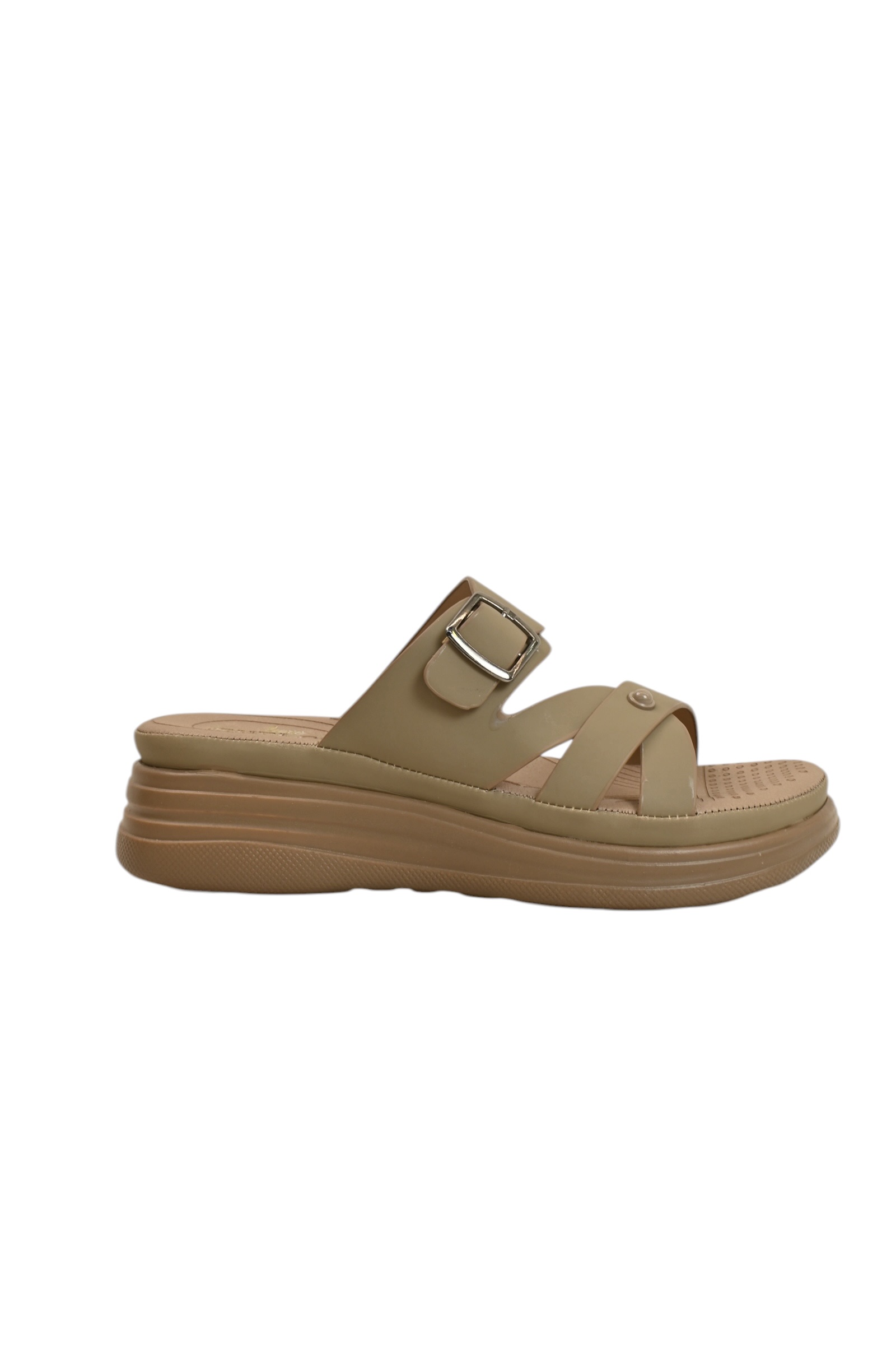 Khakhi multi strap platform sandals for women in vegan leather. Comfortable daily wear sandals with cushioned support.