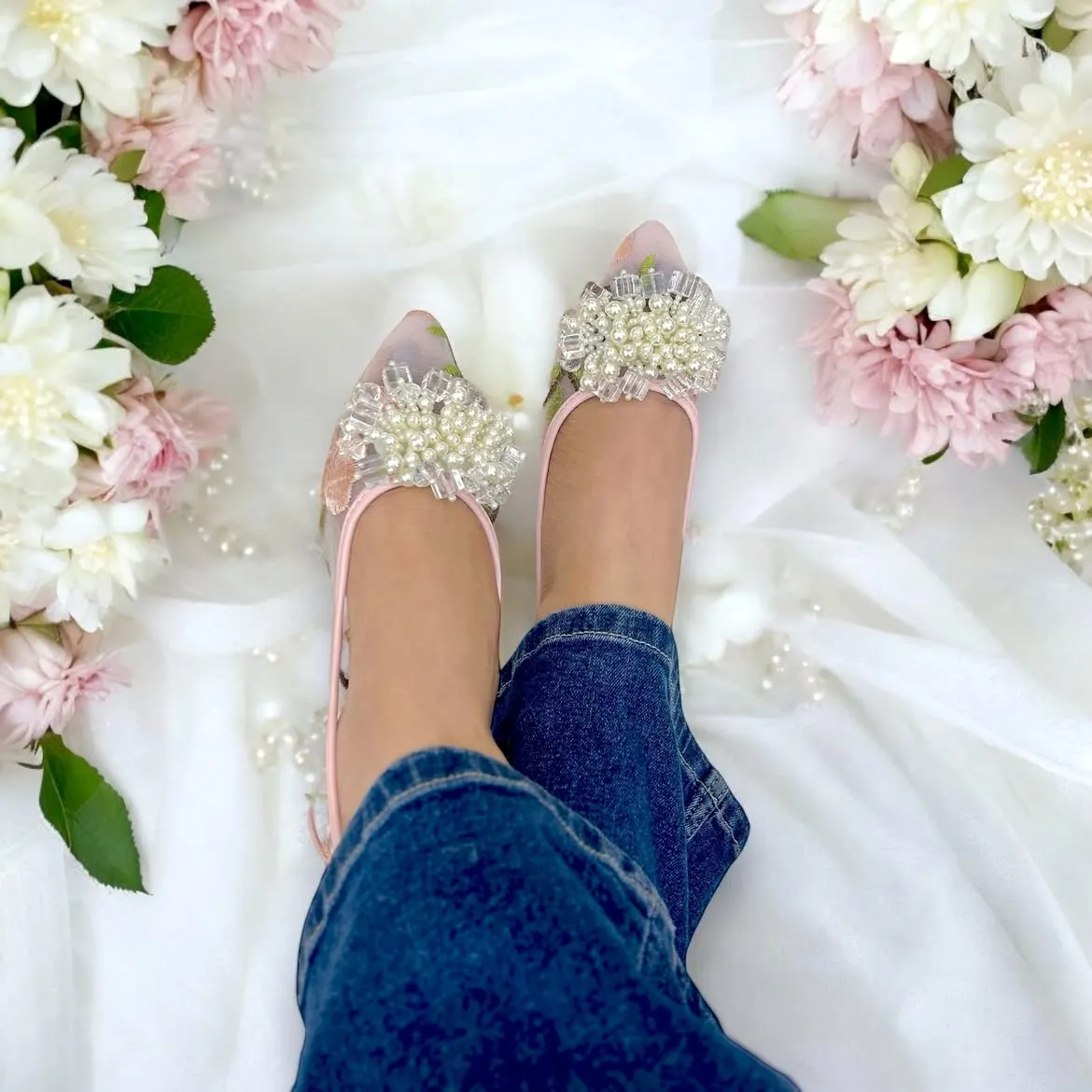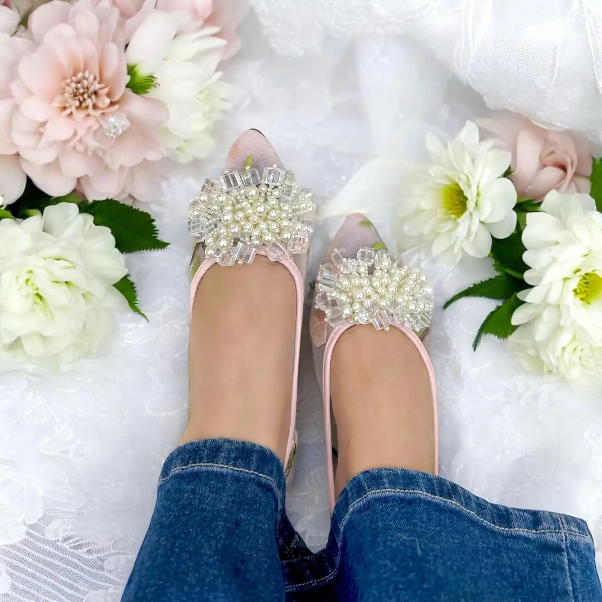 Designed with a delicate pearl embellishment, these ballerinas add a chic and graceful charm to every outfit.