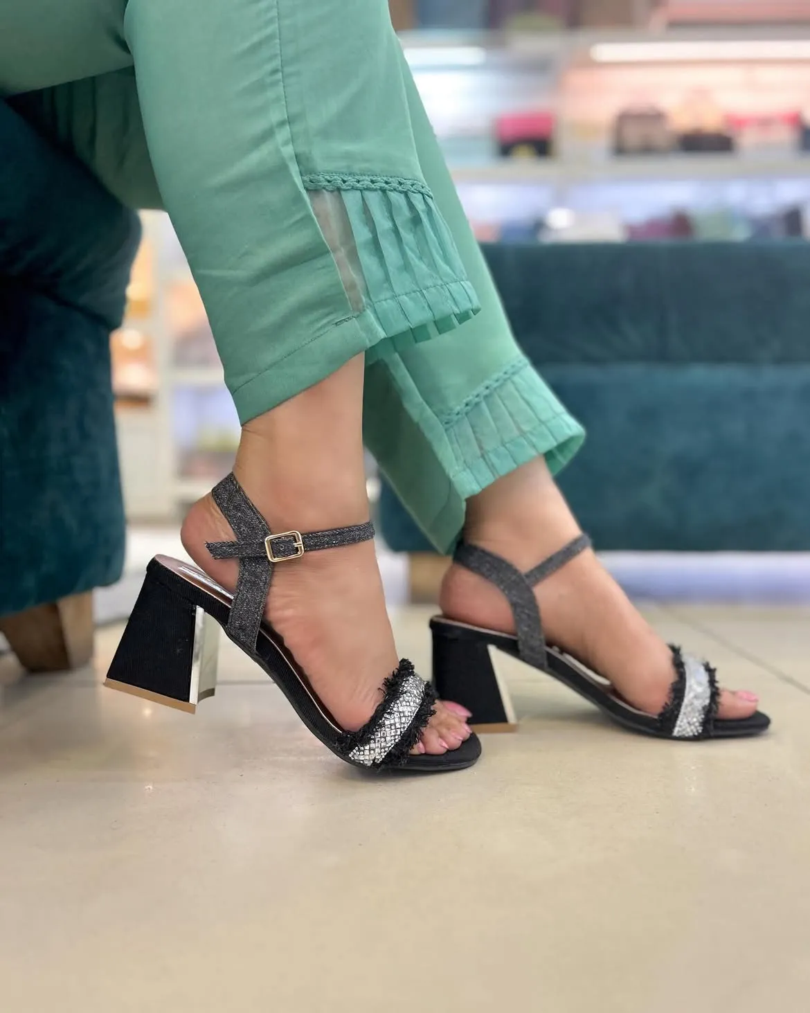 Perfect for modern women who want their footwear to make a statement without compromising on comfort, these block heel sandals combine glamour, practicality, and sophistication in one versatile pair.