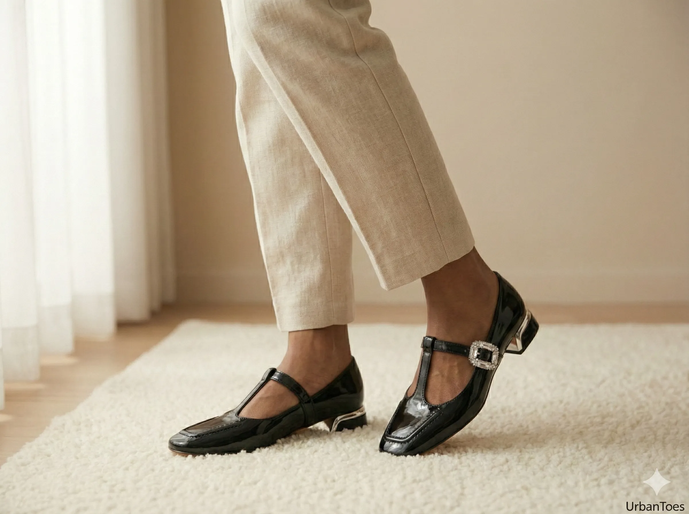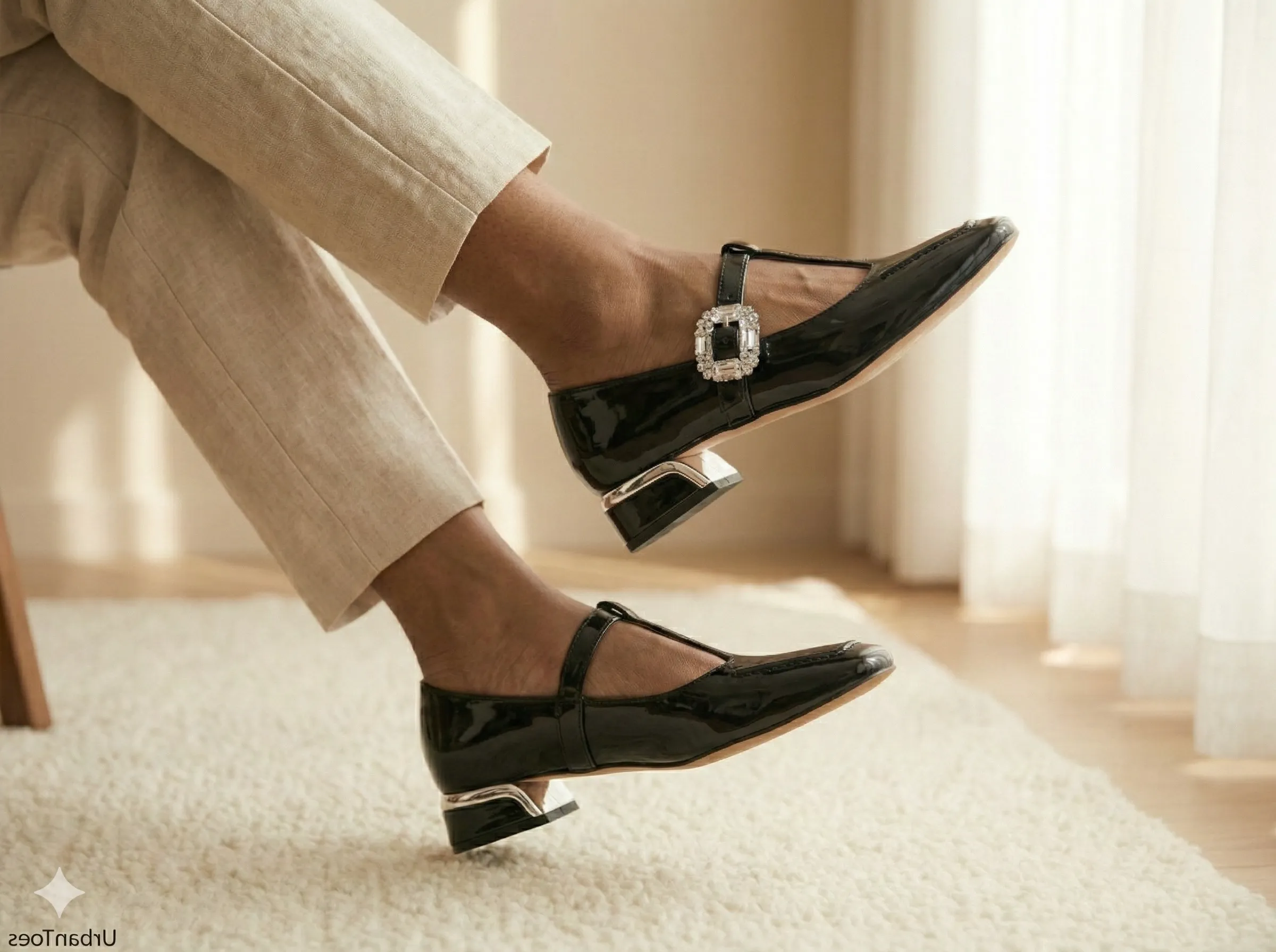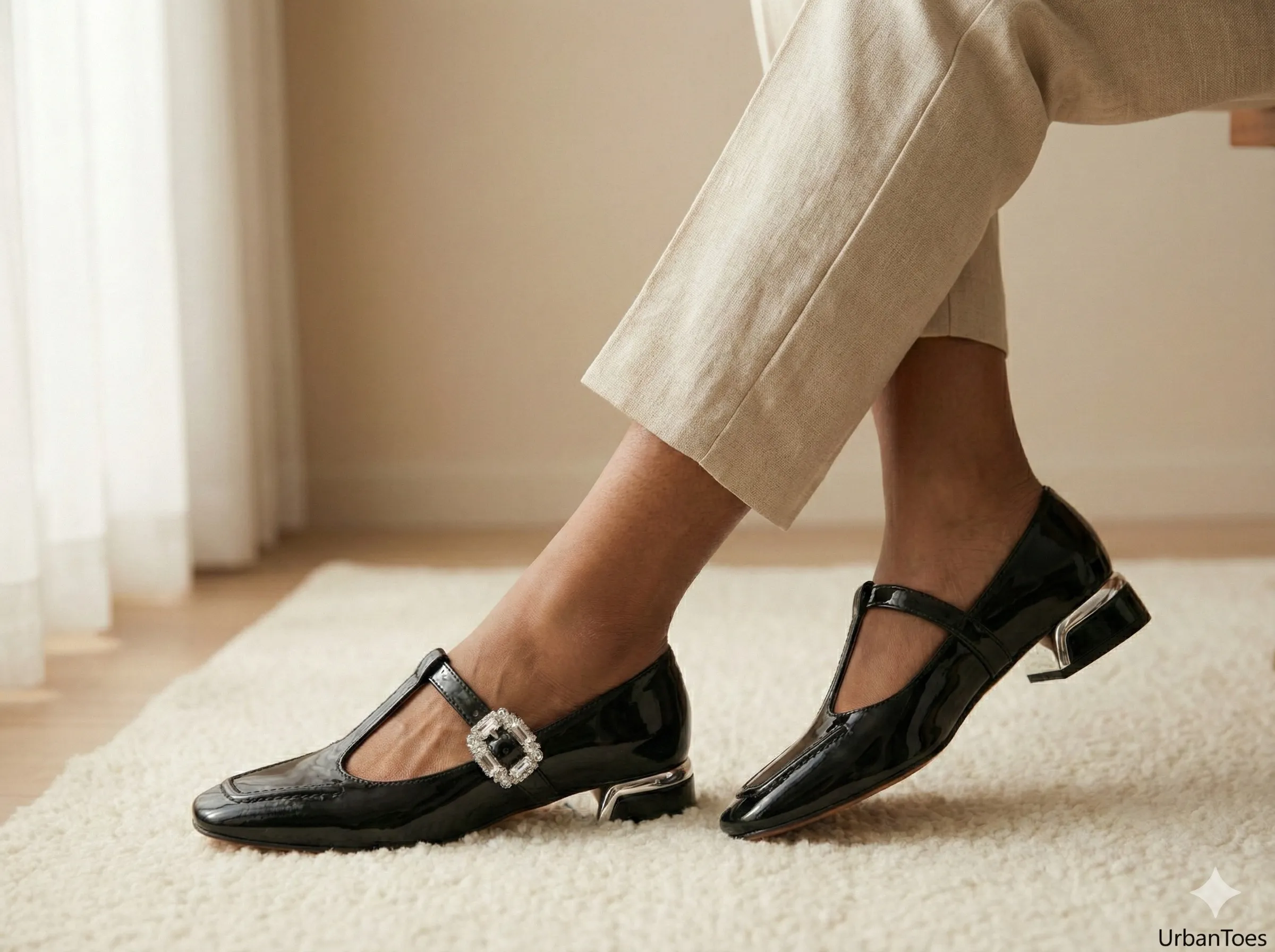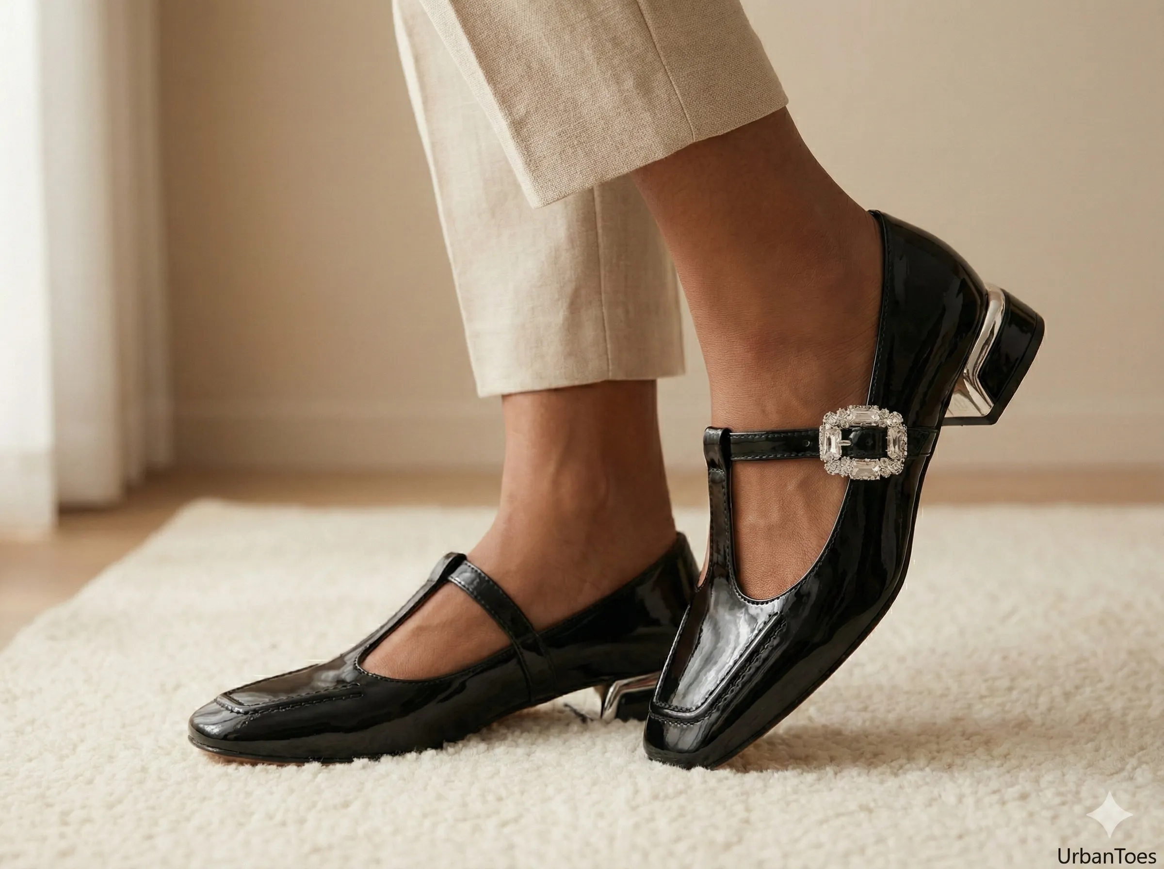 Designed for modern Indian women who balance style with comfort, the UrbanToes Noor Patent Mary Jane Heels bring together timeless elegance and everyday practicality. Featuring a glossy patent finish, these heels are accented with a crystal-embellished buckle that adds festive charm without being overpowering.