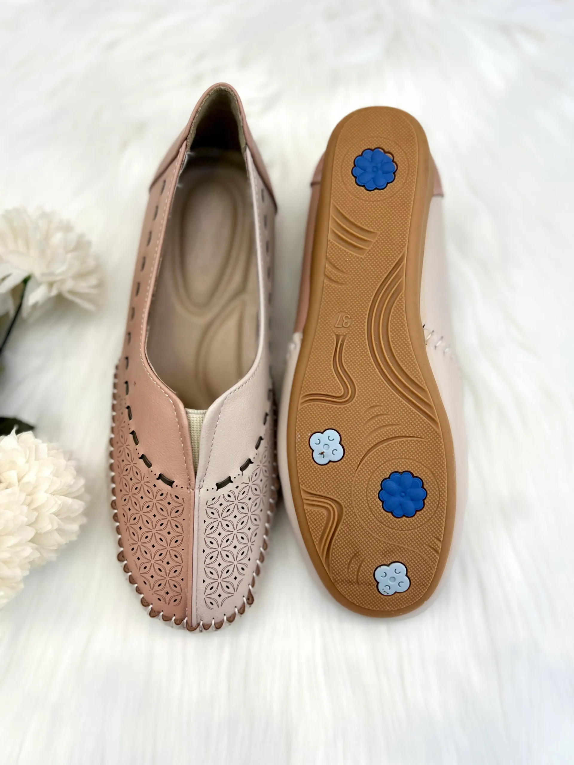 Step into everyday elegance with UrbanToes Pastel Laser-Cut Comfort Flats, thoughtfully designed for Indian women who value both style and all-day comfort. Crafted in soothing pastel pink and beige tones, these flats feature intricate laser-cut detailing inspired by traditional Indian patterns, making them perfect for both ethnic and Indo-western looks.