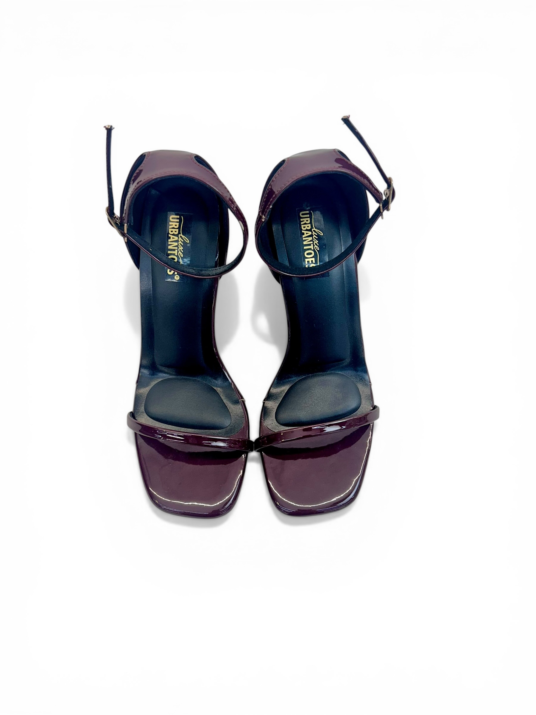 - Upper Material & Embellishments: Premium polished leather in deep wine tone with minimal strap design