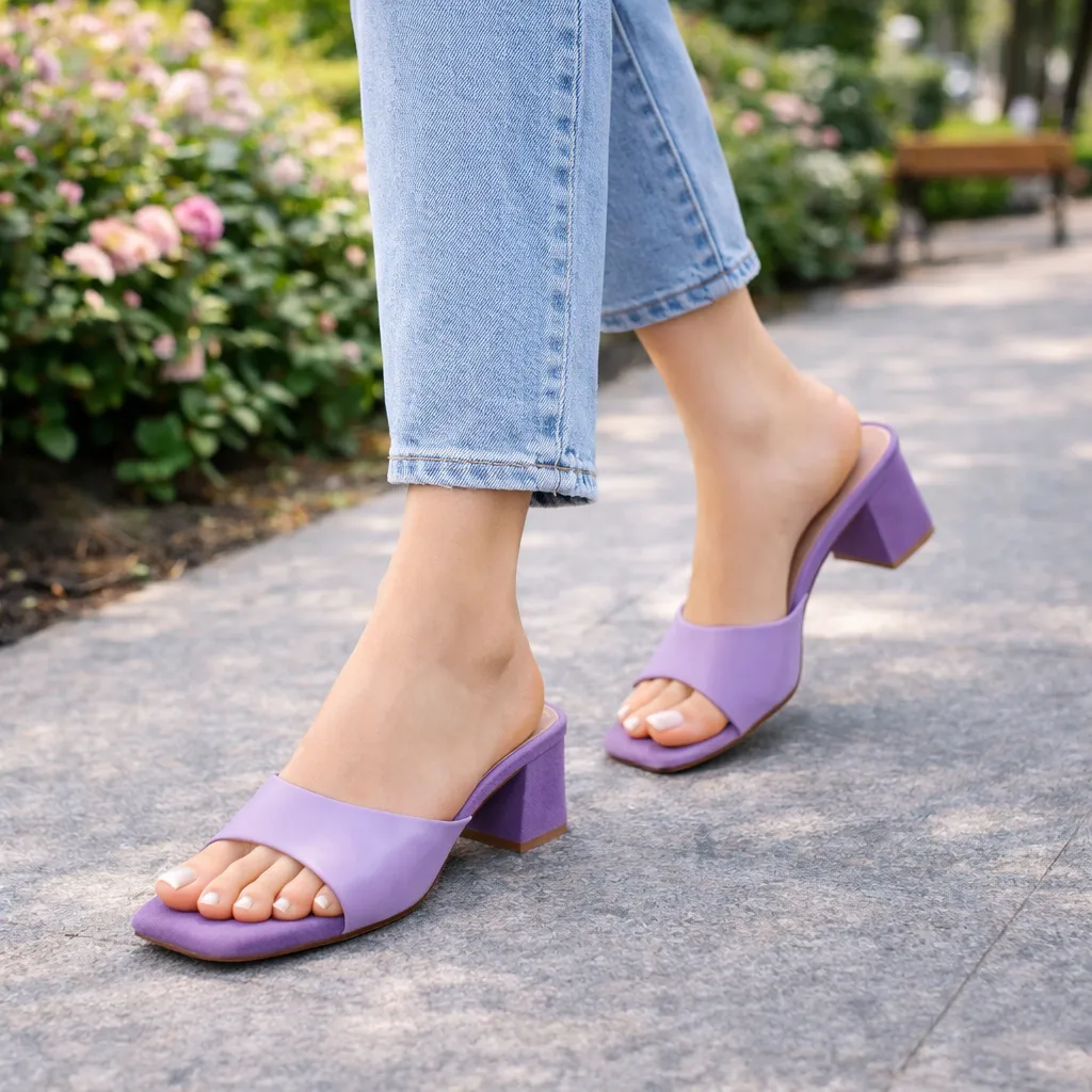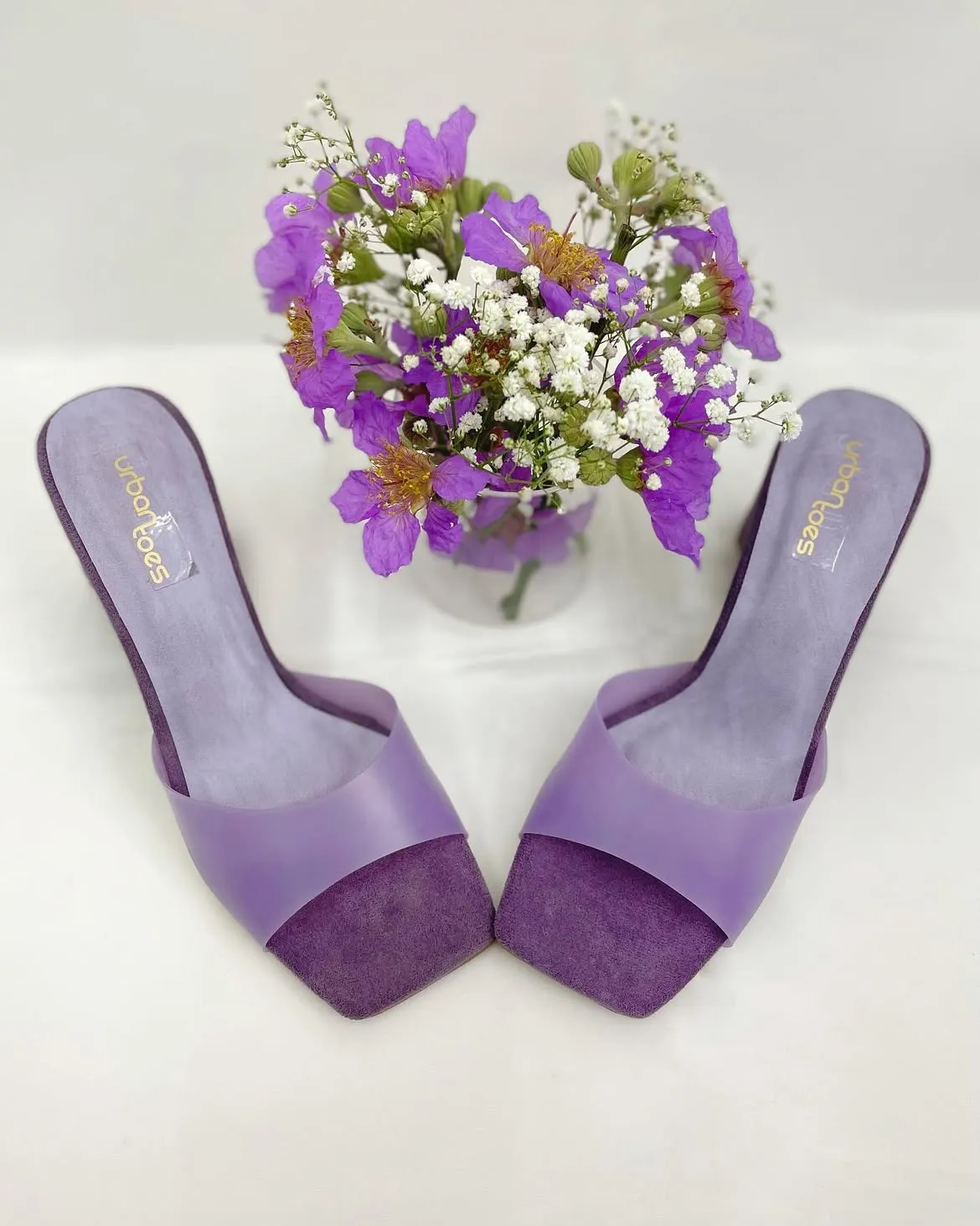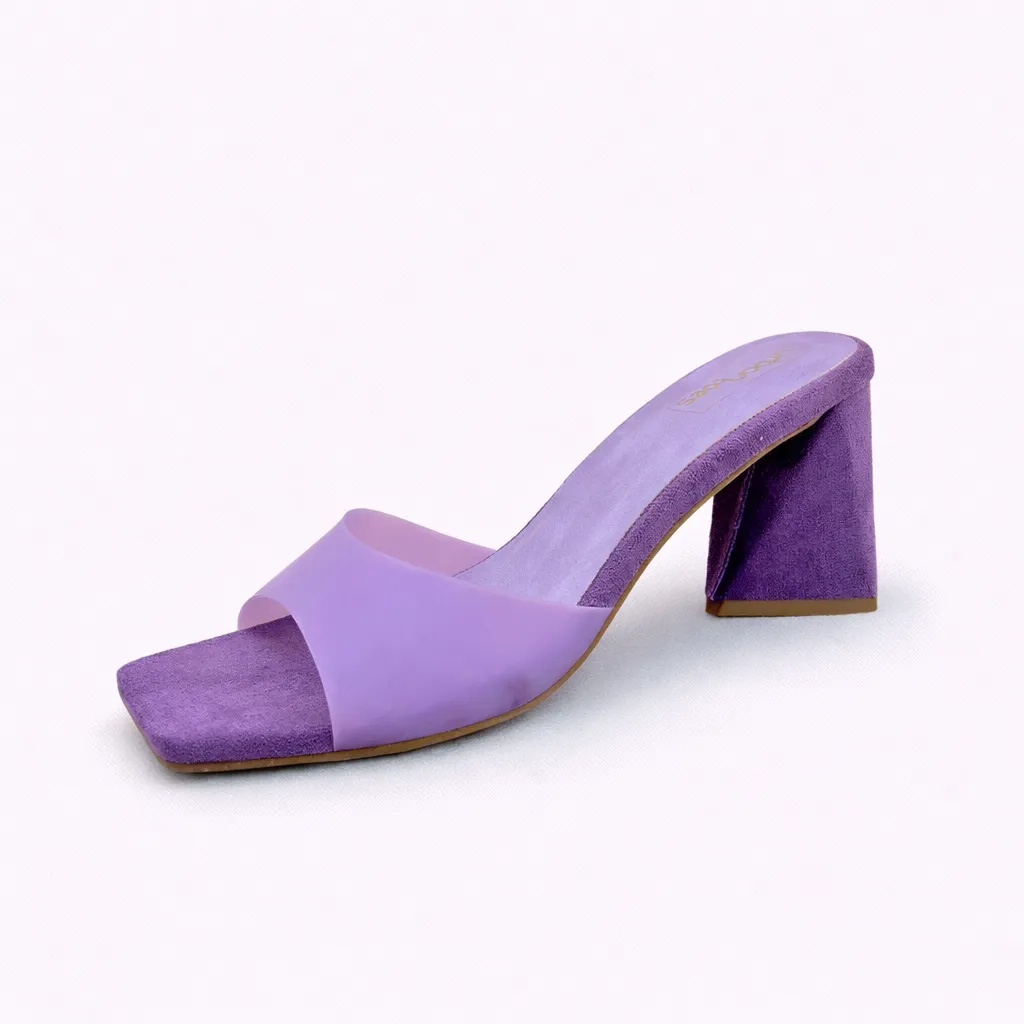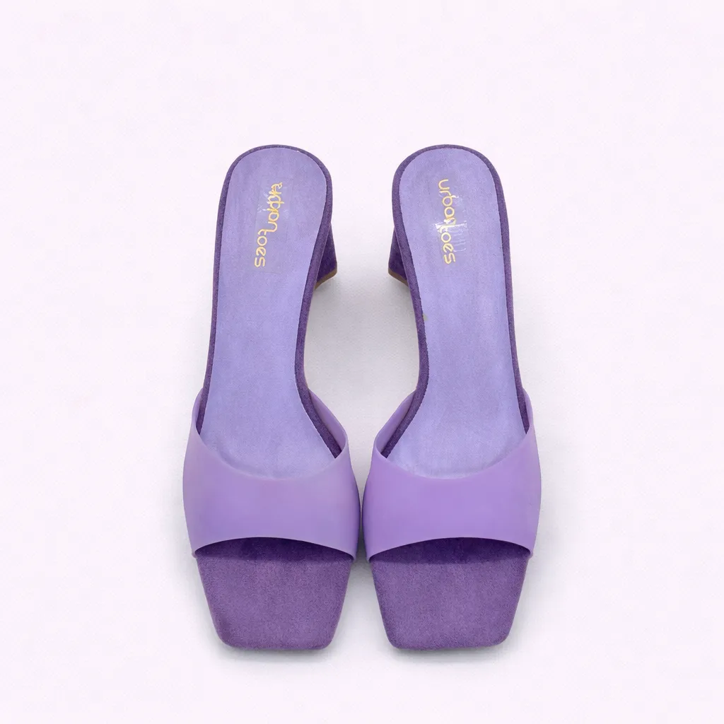The soft footbed provides comfort for long hours, while the slip-on mule design makes them easy to wear. Whether paired with dresses, sarees, or co-ord sets, these purple heels instantly elevate your look—perfect for festive occasions, parties, and evening outings.