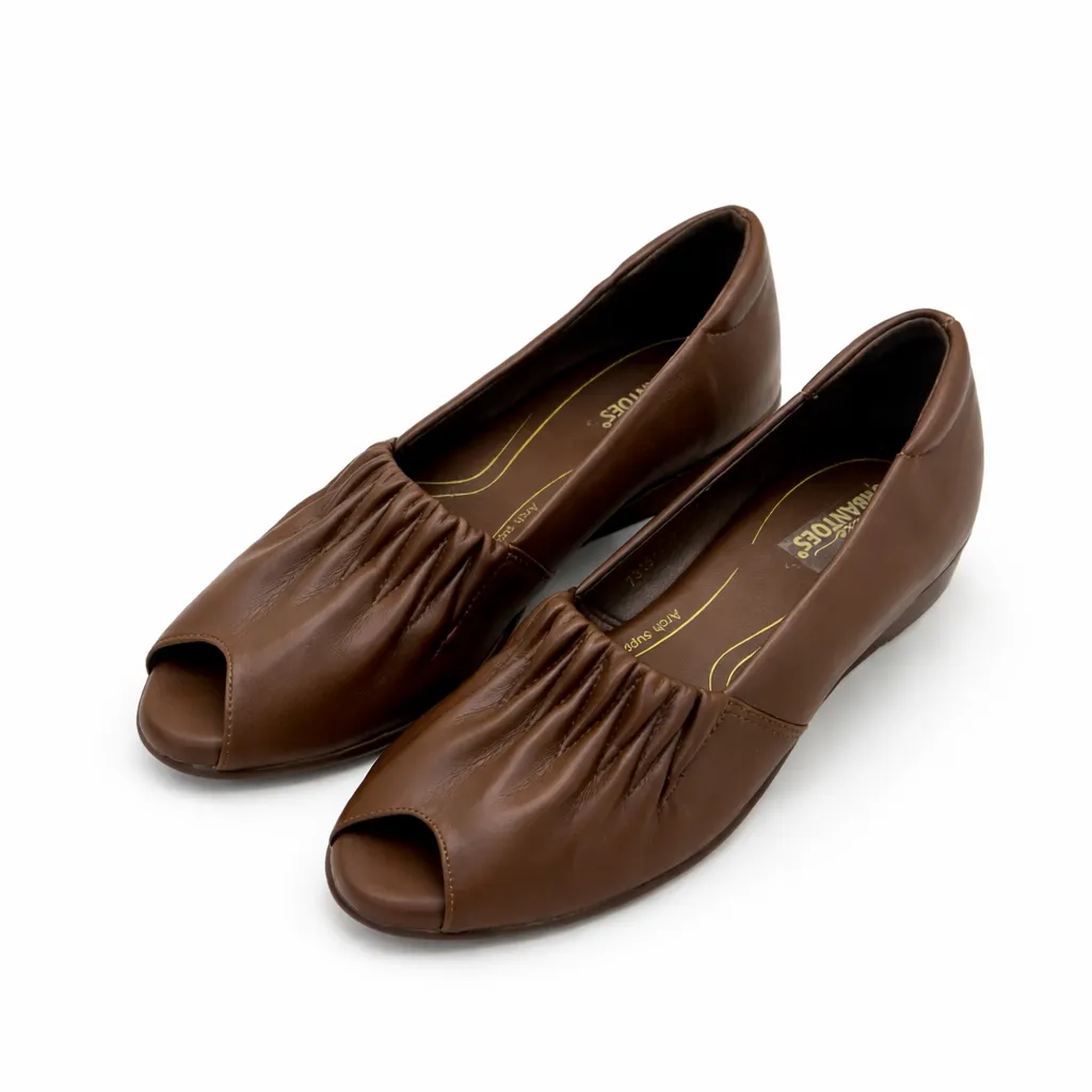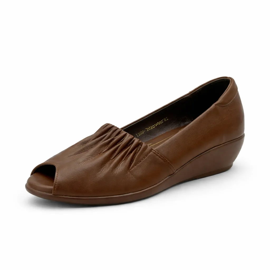 Add effortless elegance to your everyday wardrobe with these women’s Coffee Brown peep toe wedge shoes, designed for comfort without compromising on style. The sleek ruched upper gives a modern, refined look while keeping the fit flexible and comfortable.