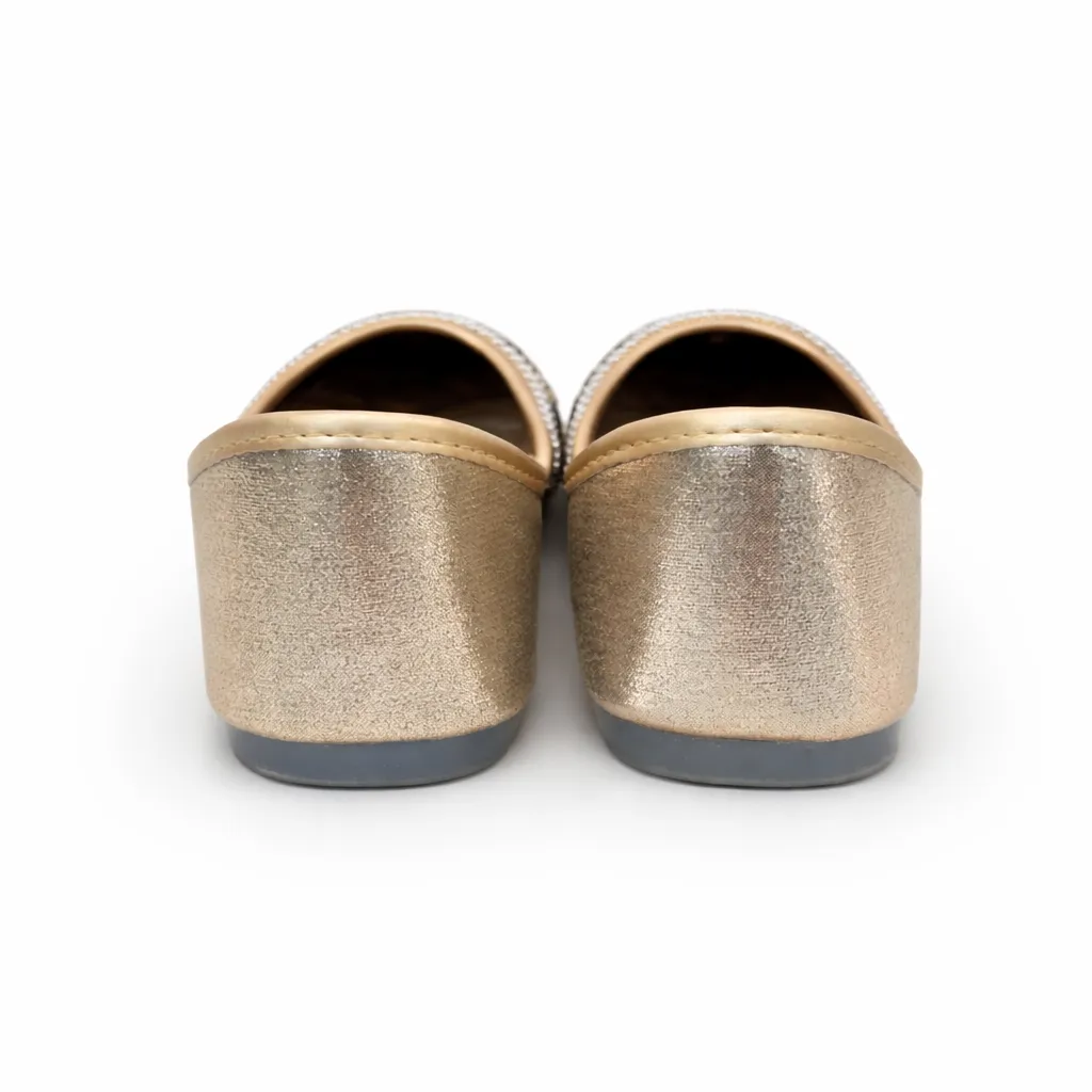 Celebrate timeless tradition with this women’s golden Punjabi jutti, beautifully handcrafted with delicate pearl and stone embellishments. Inspired by classic Punjabi artistry, this jutti adds regal charm to every ethnic look.